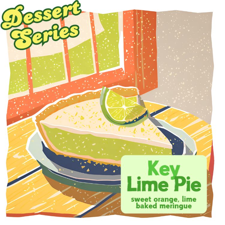 Delight in the zesty sweetness of "Key Lime Pie". This mouthwatering blend features tangy lime, bright sweet orange, and rich baked meringue, capturing the essence of a classic dessert.